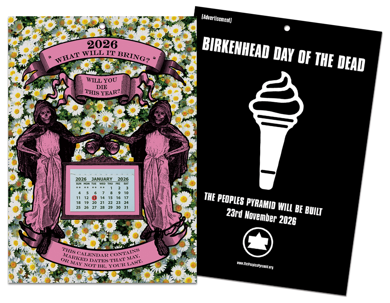 This year the calendar features an advert for the Birkenhead Day of the Dead 2026Â on the back, so if you tire of looking death in the face you can flip it over and think instead about an epic and joyous event to come later in the year.